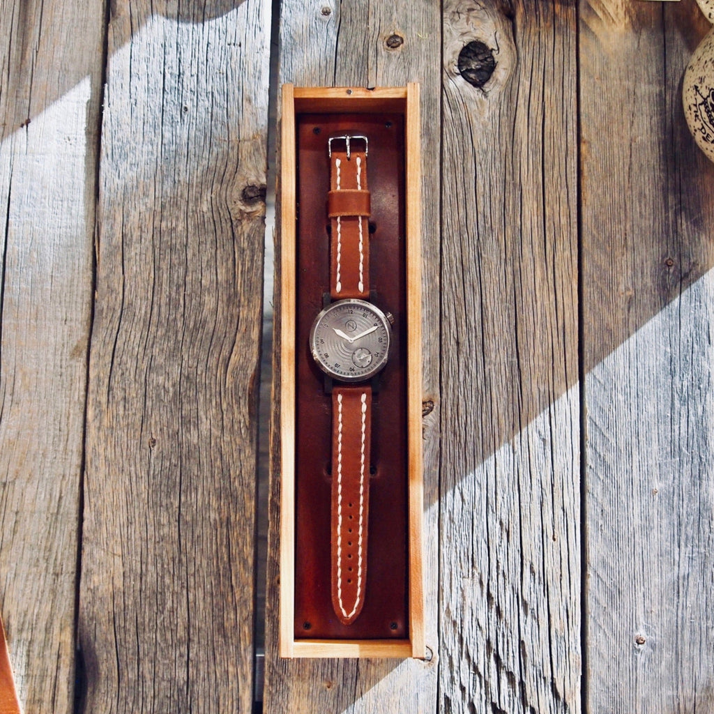 You’re looking at our flagship timepiece that is hand crafted in my hometown of Lethbridge, Alberta from retired rail. I’ve been making some of the most unique, award winning timepieces in the world and am passionate about what I do. You won’t find any lower-priced options with us but you will find inspiration. Each and every timepiece comes with its own unique soul that tells a story through the infusion of century-old rail and creativity. Our unique process transforms watches into meaningful pieces of art that will be passed down for generations. If you appreciate craftsmanship, crave uniqueness and want to own a true one-of-one timepiece that tells your story I’d love to work with you. If you have your own rail you’d like us to use for your custom rail timepiece we can definitely make that happen!