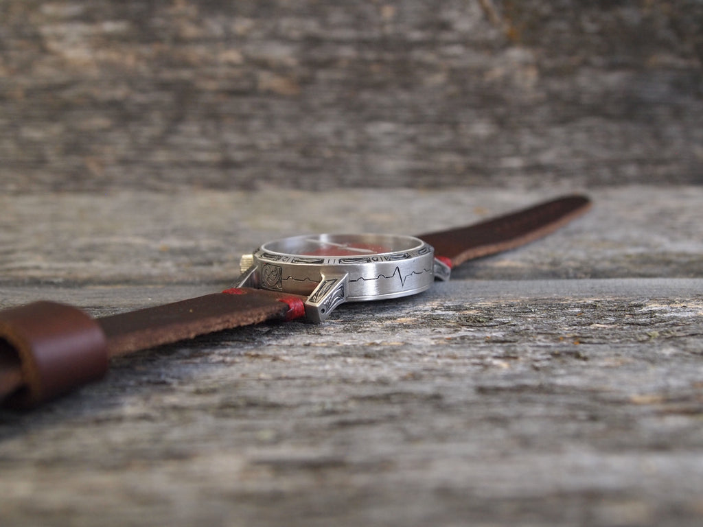 We work with anything! We’ve worked with NFL helmets, MLB cleats, train tracks, military tanks, branding irons, iPhones, and more. Every watch is different so feel free to call or email to chat more about your specific material and see what we can do with it. Email steve@novowatch or call 888-782-2607.