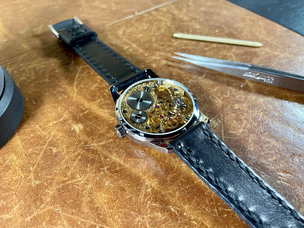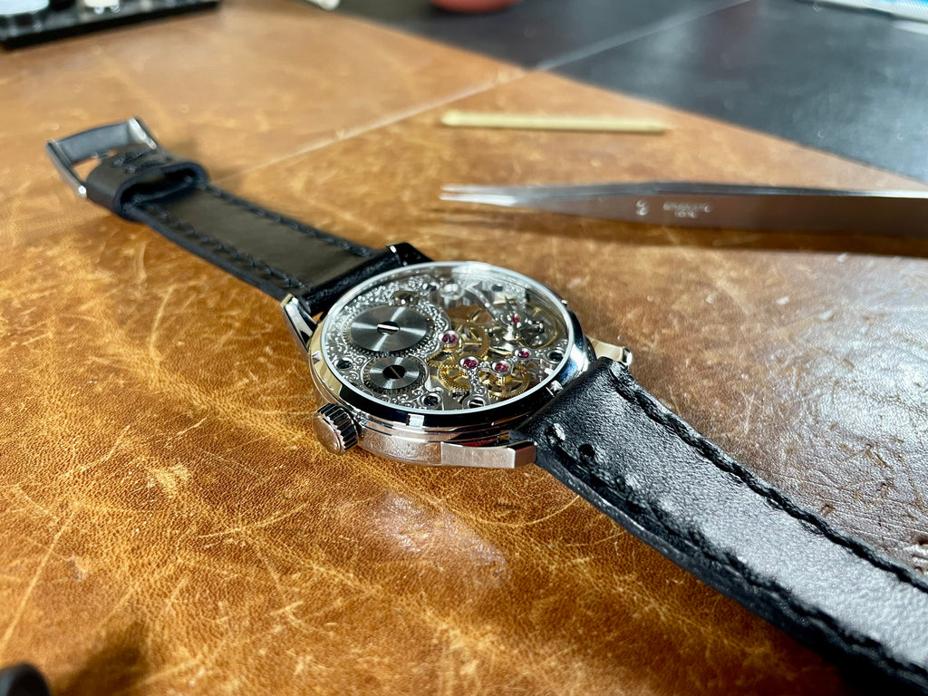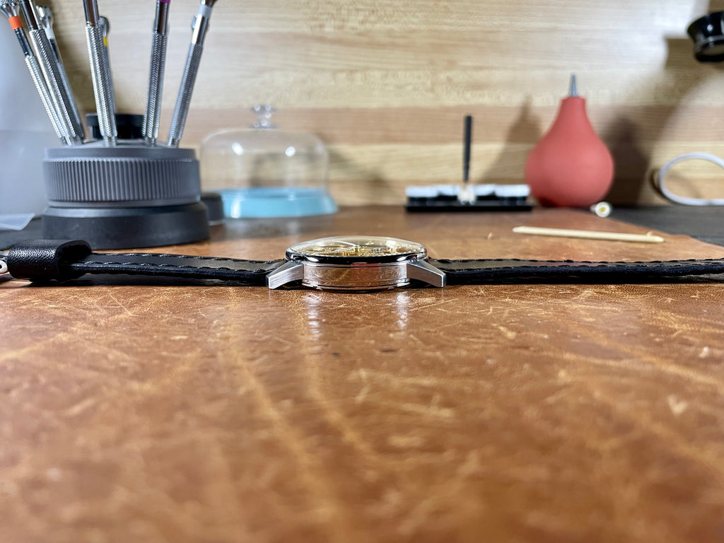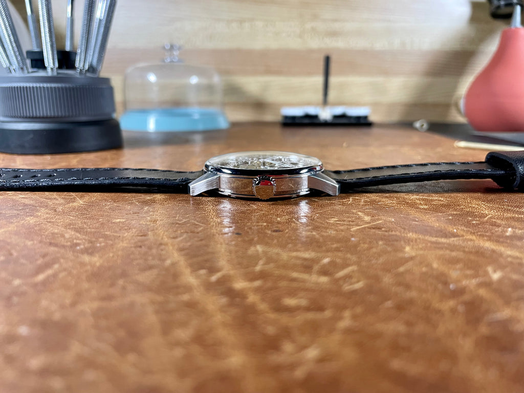 Band: Handmade black leather strap from Hermann Oak Leather.