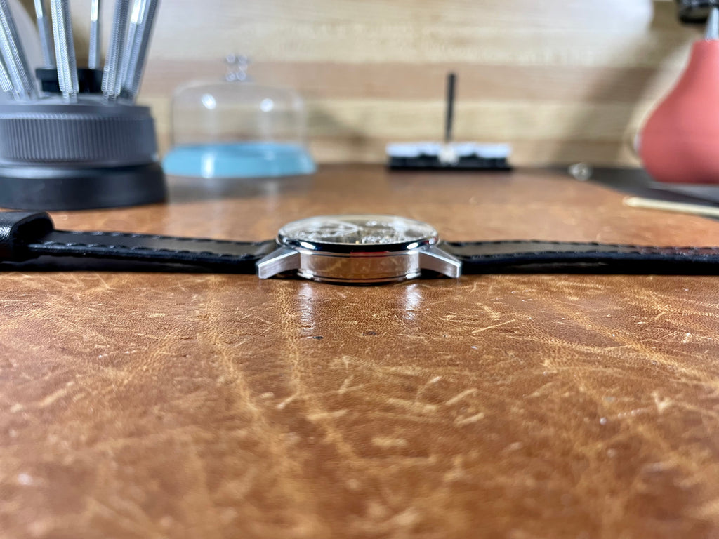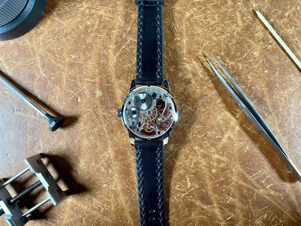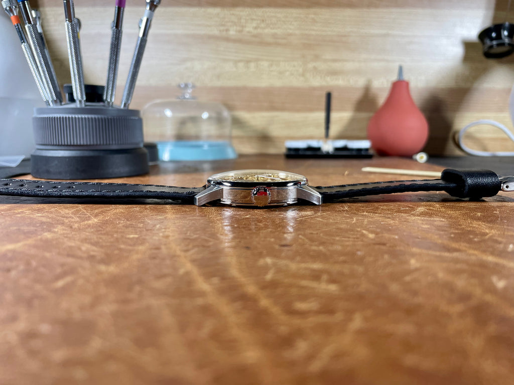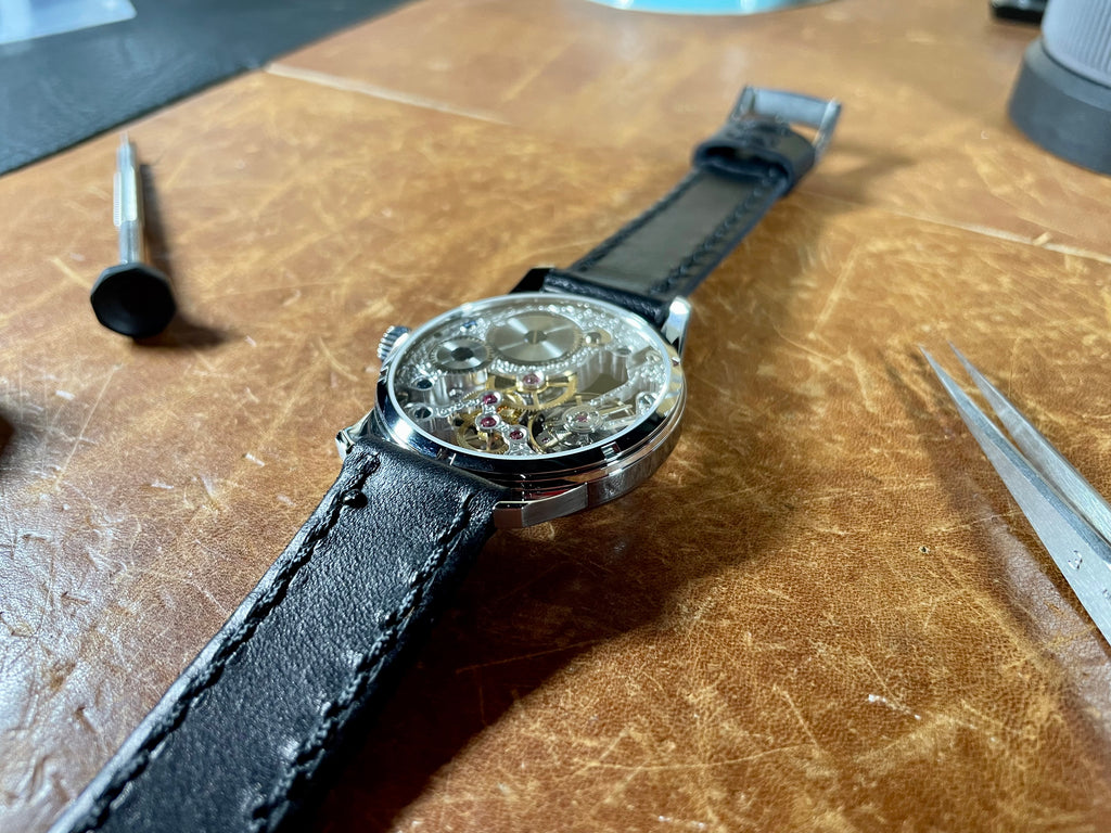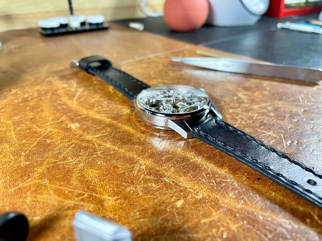 Band: Handmade black leather strap from Hermann Oak Leather.
